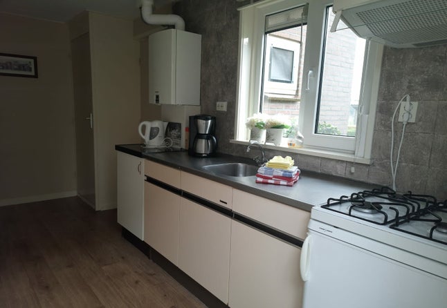 - Keuken: Met aanrecht, tafelmodel koelkast met vriesvak, vierpits gasstel met afzuigkap, magnetron, air fryer, koffiezetapparaat met thermoskan, serviesgoed, bestek en keukengerei,
